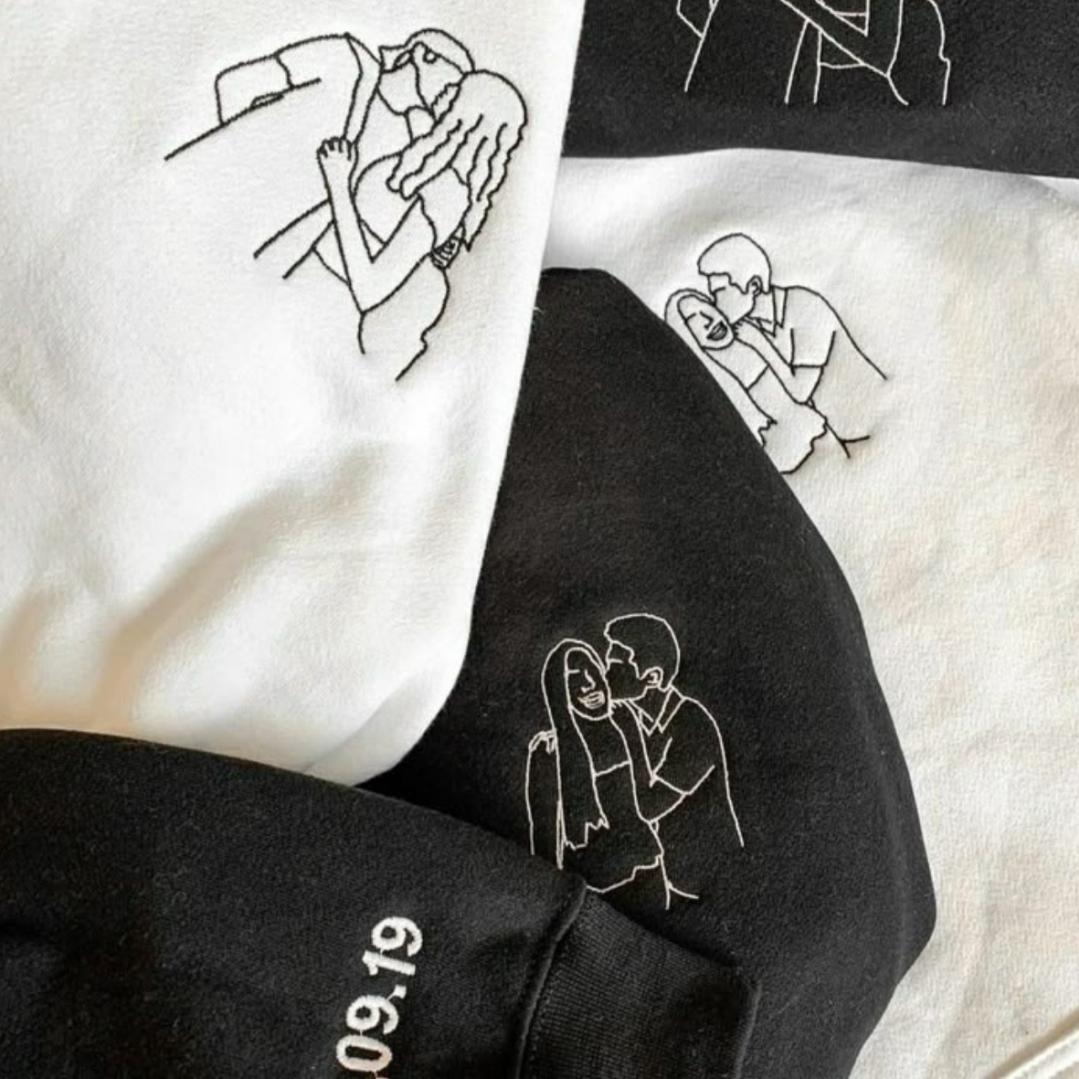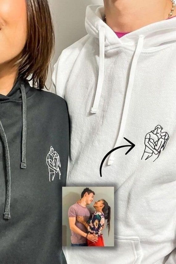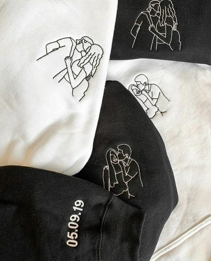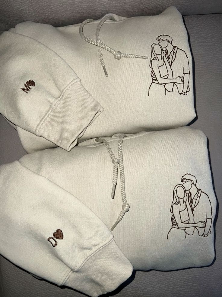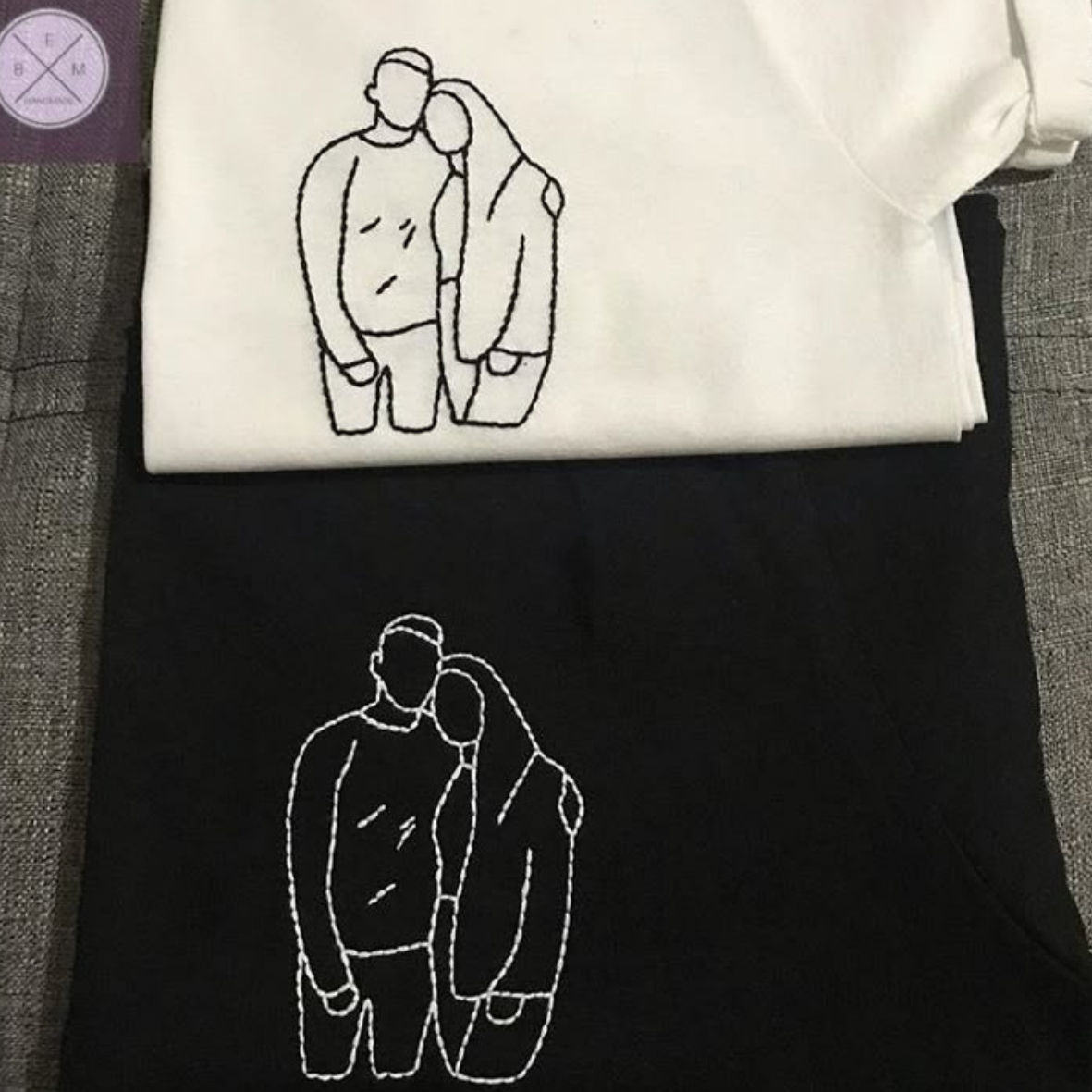 Couples Portrait Outline Embroidered Hoodie – Your Photo
