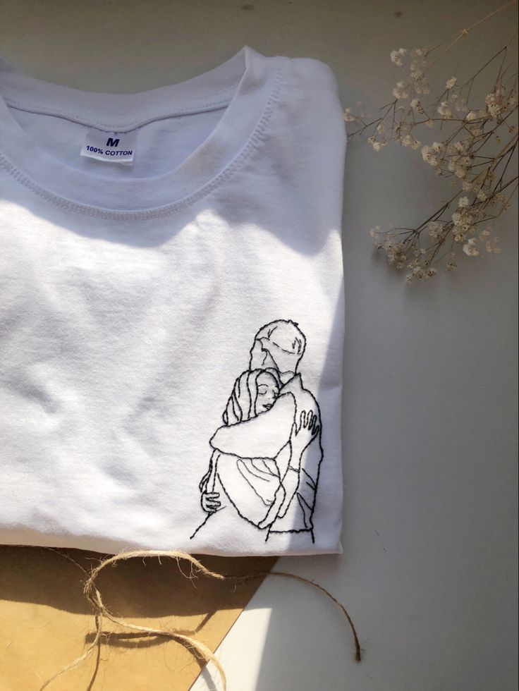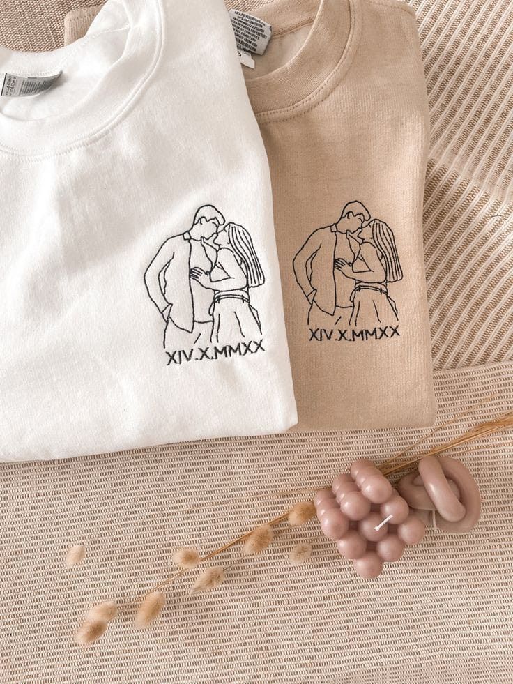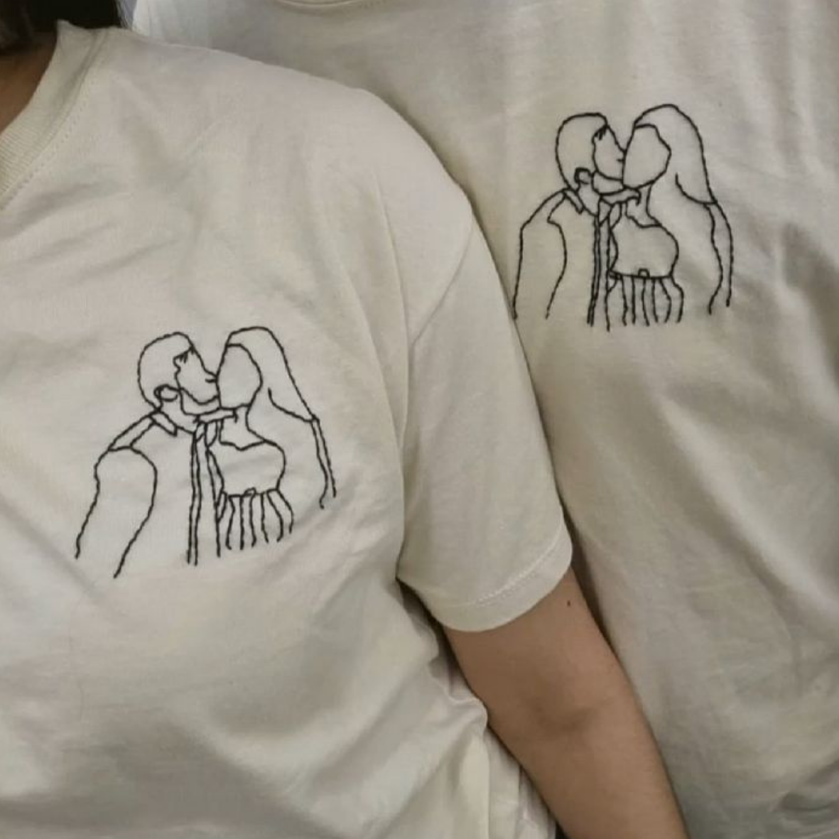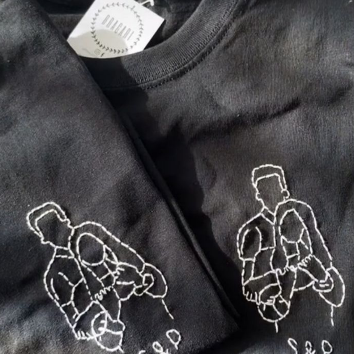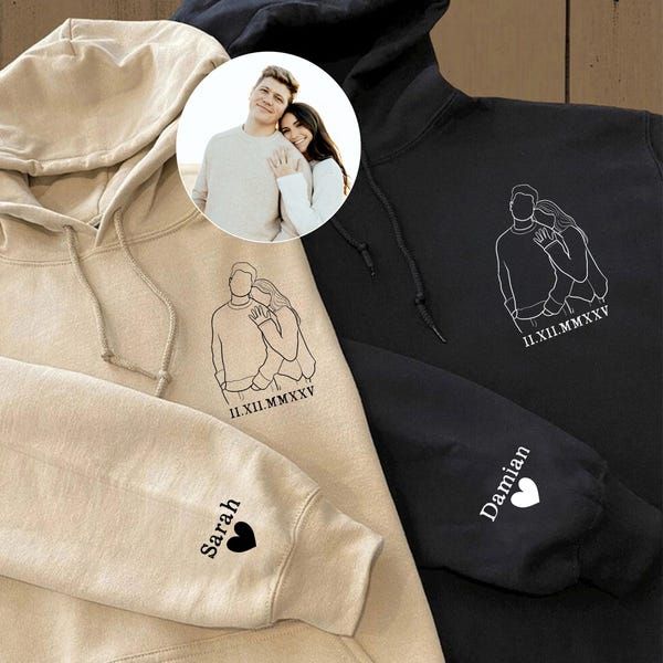 Couples Portrait Outline Embroidered Hoodie – Your Photo