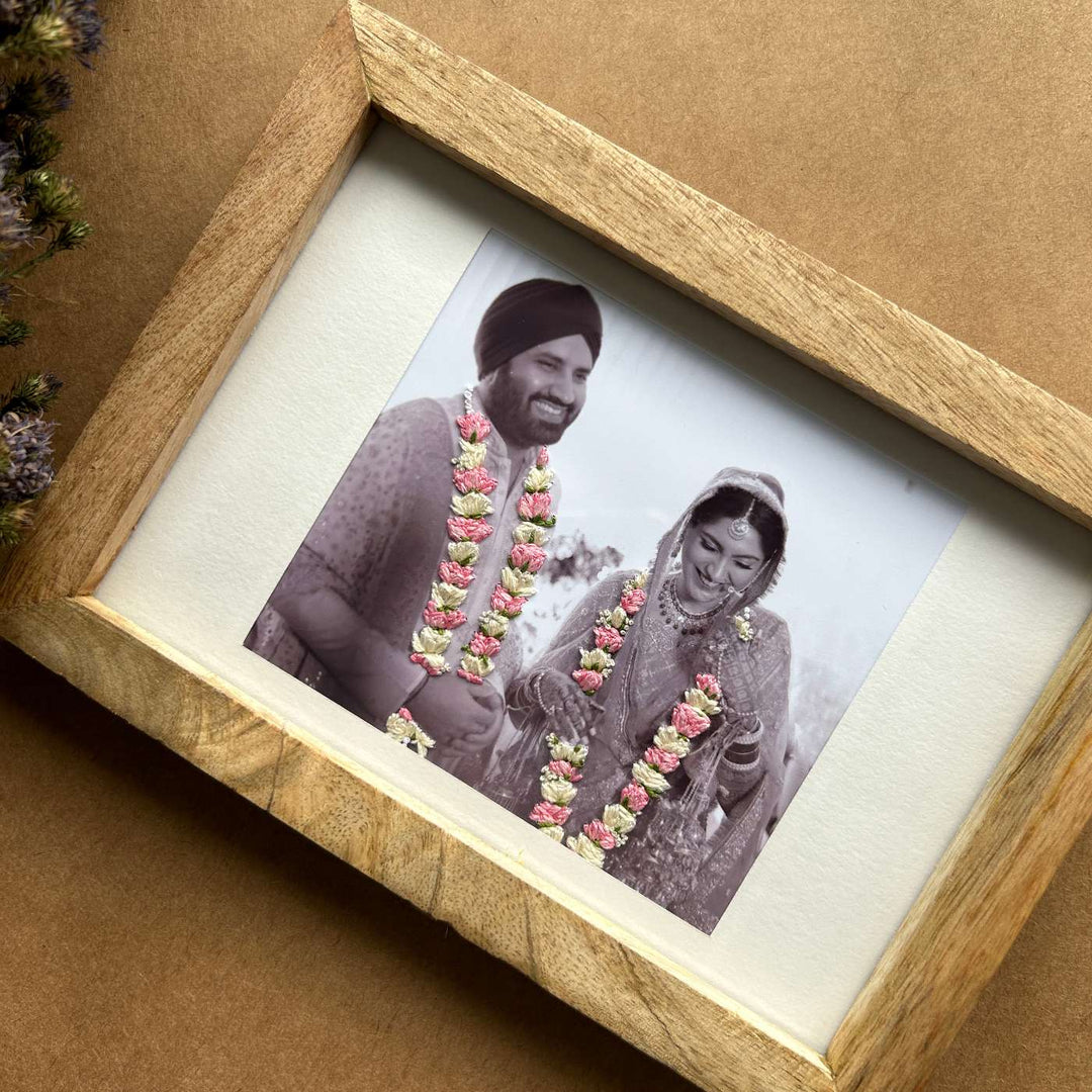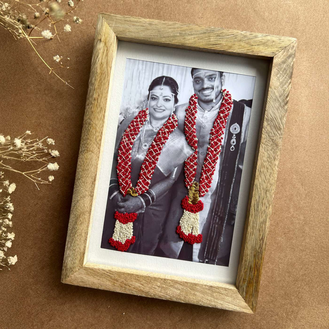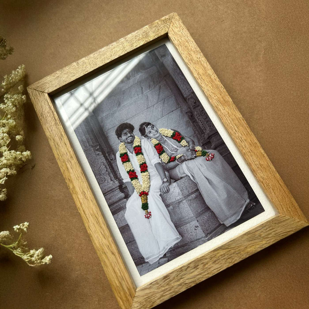 Your cherished photo is enhanced with beautiful hand embroidery — floral designs, names, or dates — and framed to perfection. A heartfelt gift or a stunning décor piece!