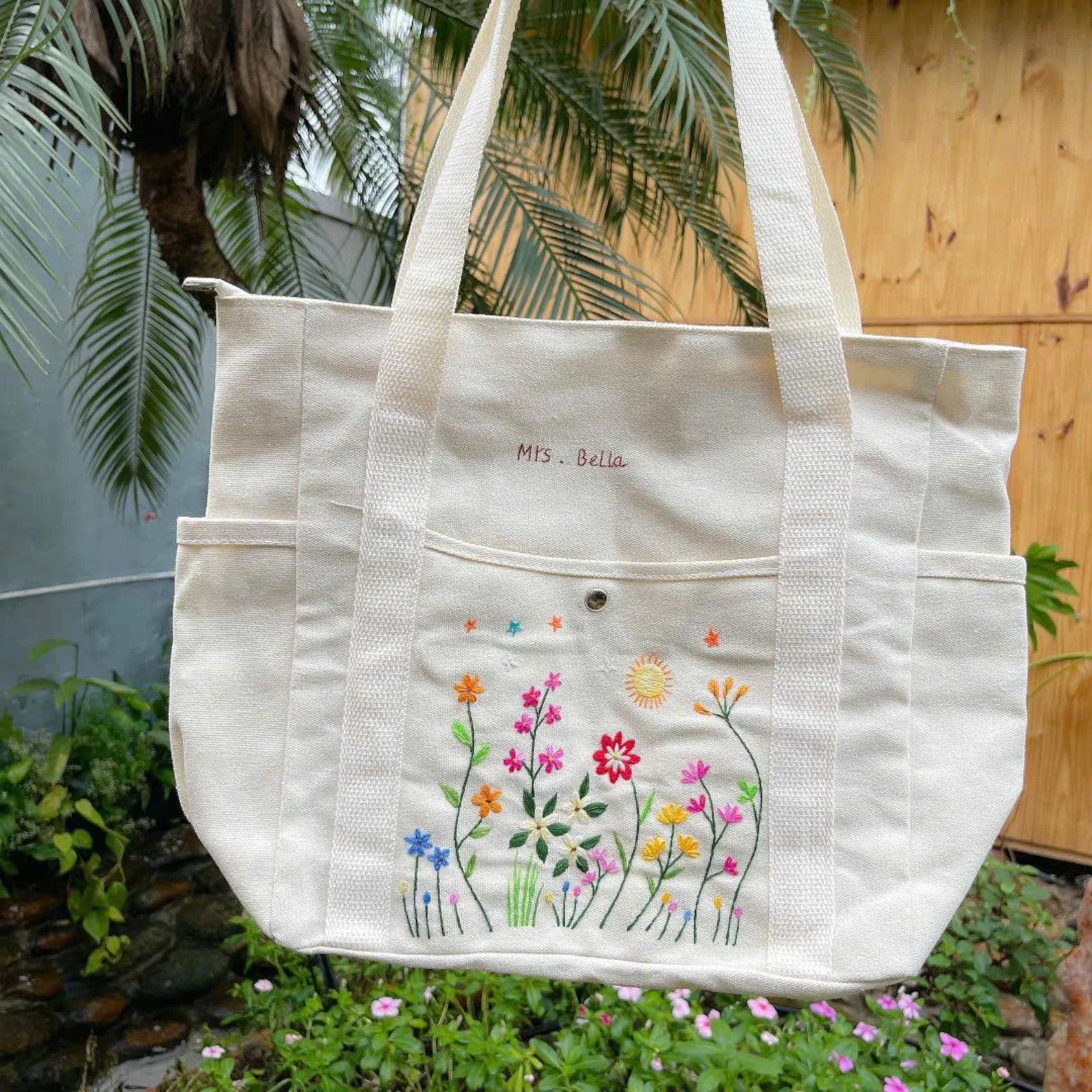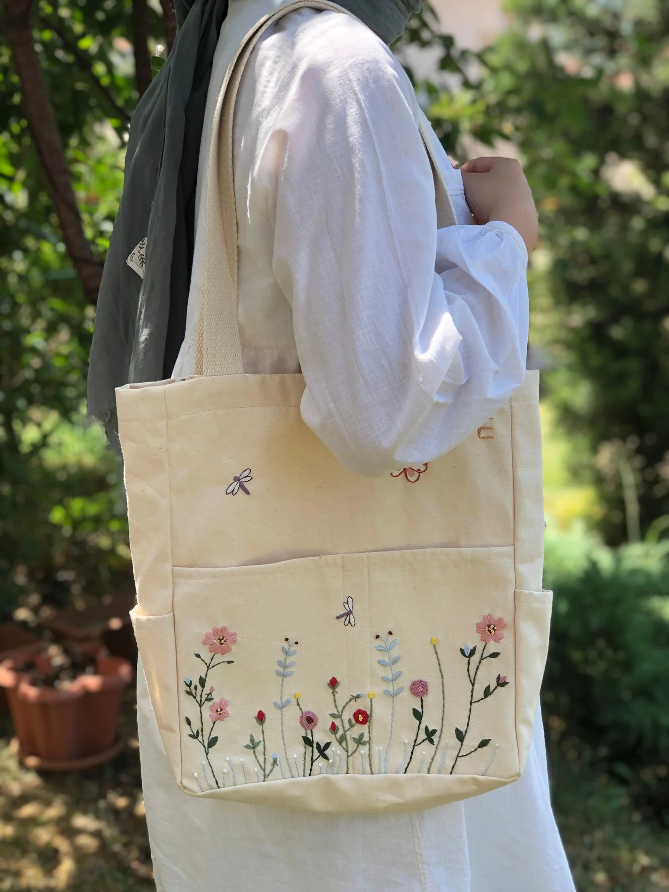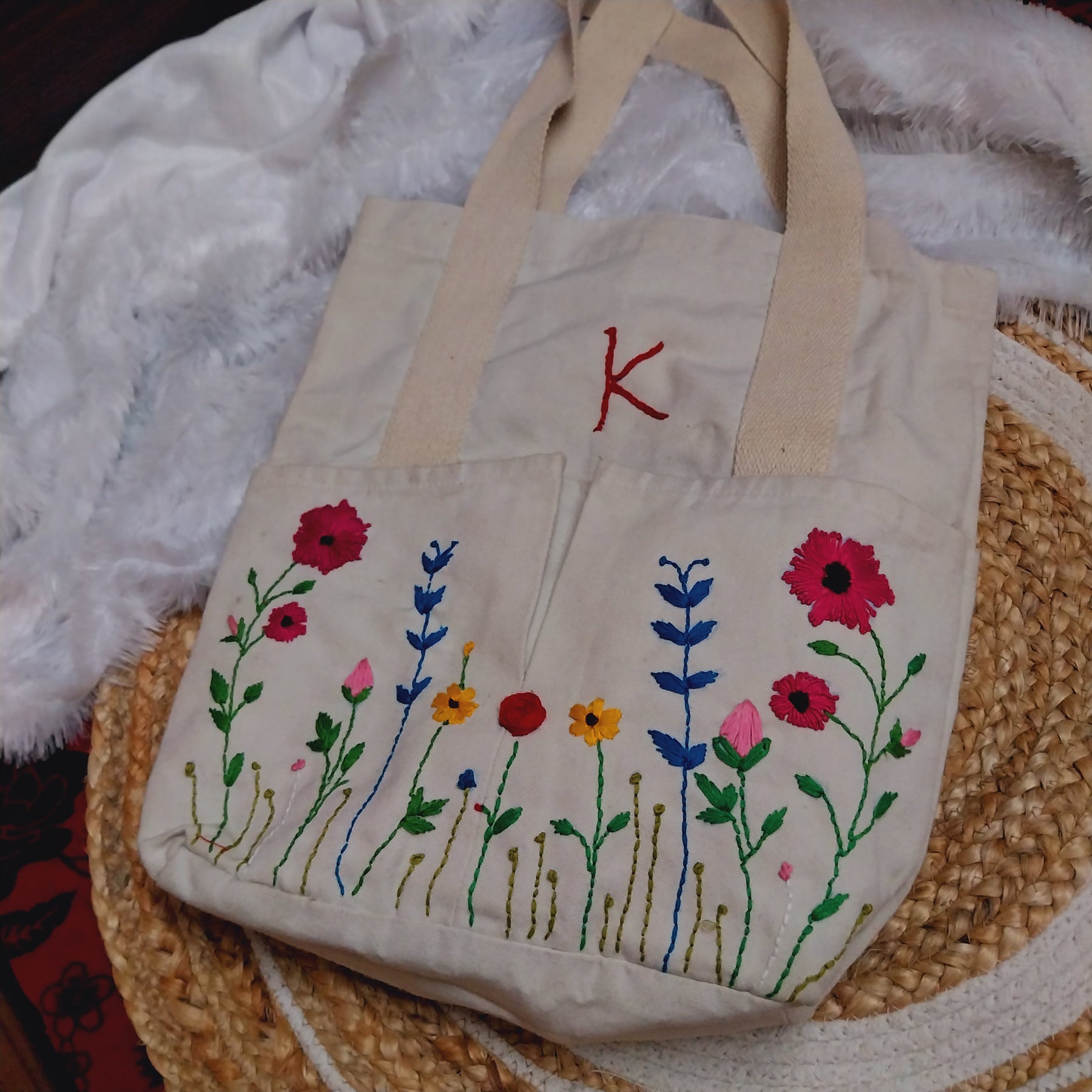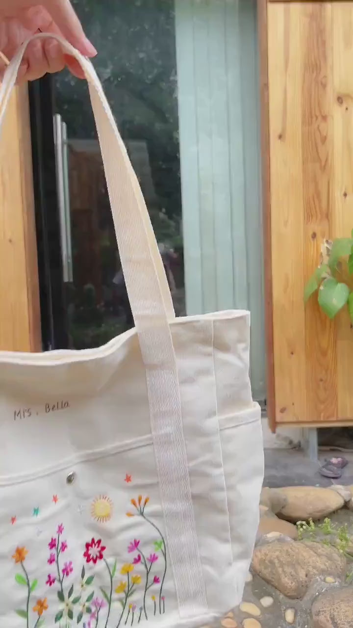 Carry your essentials in style with our hand-embroidered tote bags, made from sturdy canvas fabric. Each bag features a unique design, combining everyday functionality with handcrafted charm.